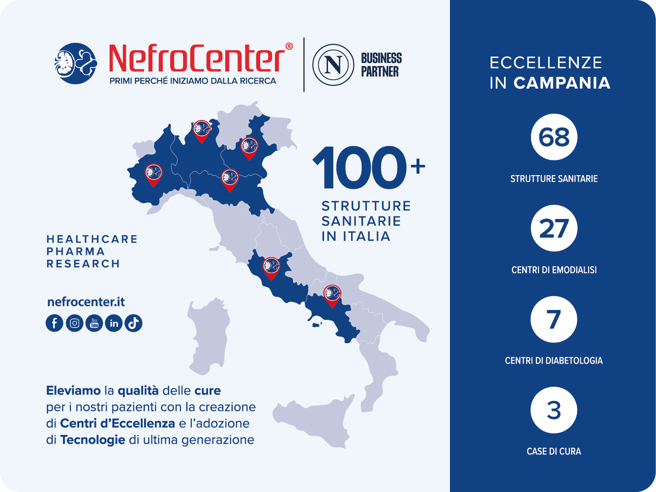 Il rinnovo della partnership conferma la volontà del gruppo sanitario di essere partner consolidato dell’esperienza sportiva al fianco dei campioni d’Italia. NefroCenter conta oltre 100 strutture cliniche e ospedaliere private e convenzionate, attive in tutta Italia. L’offerta clinica spazia dalla nefrologia e dialisi alla diabetologia, dalla cardiologia alla neurologia, passando per riabilitazione, diagnostica per immagini e di laboratorio, biologia molecolare e genetica e fino alle attività cliniche, chirurgiche e salva vita ospedaliere.